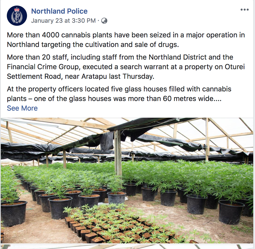 Here are the Northland Cops boasting about their latest bullshit war on cannabis…