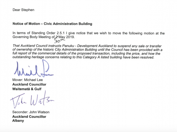 Notice of Motion at the Council Governing Board for the Civic Administration Building
