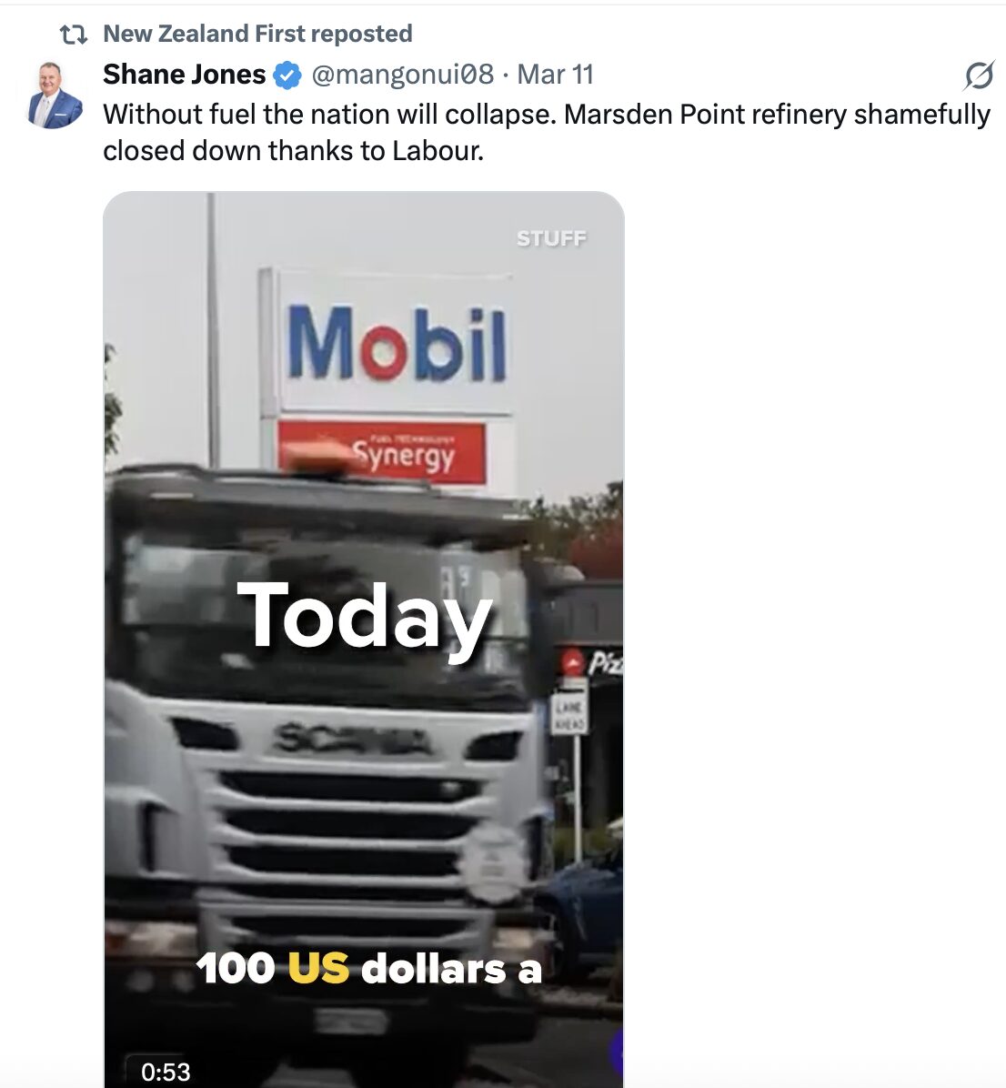 1 – Marsden Point refined oil, it didn’t magically make it! The price surge is happening because the Straits have been closed, that means even if Marsden Point were open, the oil still wouldn’t be getting shipped! Pretending that if it were open we would be more secure is just a total lie!