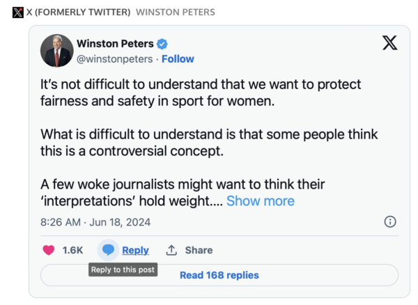 “It’s not difficult to understand that we want to protect fairness and safety in sport for women,” he posted on Twitter.