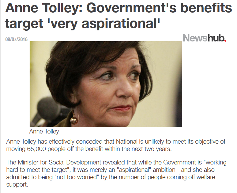 NZ Herald: Anne Tolley – Government’s benefits target ‘very aspirational’