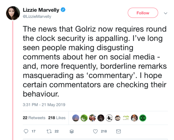 Golriz Ghaharaman has been personally singled out by the unpleasant brigade including Whale and Penguin, for some reason, for several years now, and should be defended on principle.