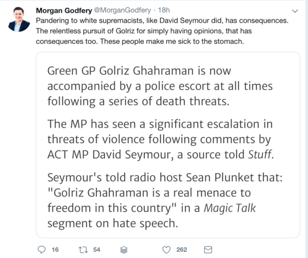 David Seymour’ comments on Ghahraman are inexcusable. I hope the voters of Epsom do to him as voters did for Fraser Anning at the last election.