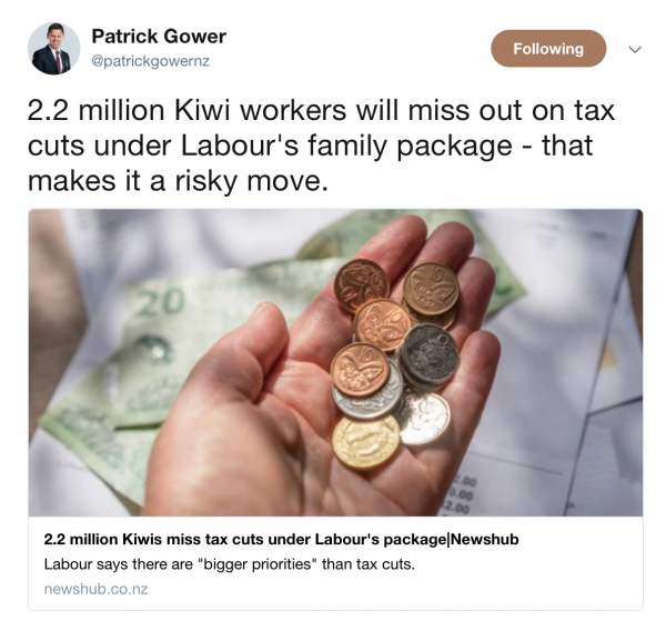 “2.2m kiwi workers won’t get 2 Big Mac combos worth of tax cuts each week – Western Civilisation is about to end.”
