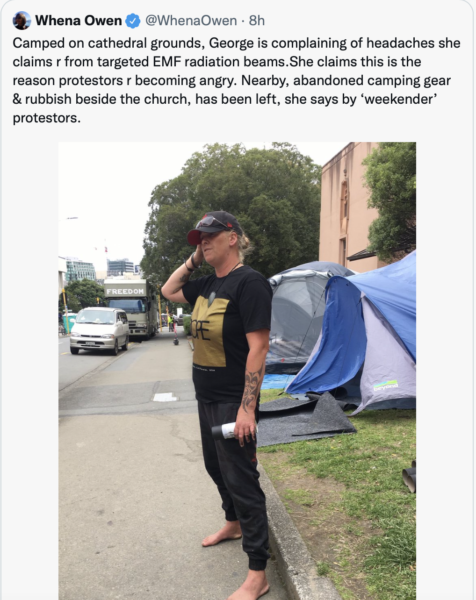 I saw another clip showing a protestor from Wellington signaling alarm to other protestors that many were now getting very sick which proves the Government are trying to poison them. WTAF?