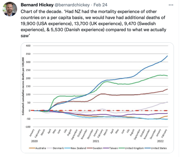 National: Luxon’s problem is that graph. He can complain and attempt to harvest Covid impatience, but the reality is National wouldn’t have done anything differently or nearly as competently. Luxon can’t win votes here because Labour’s Covid response has been one of the best in the world.