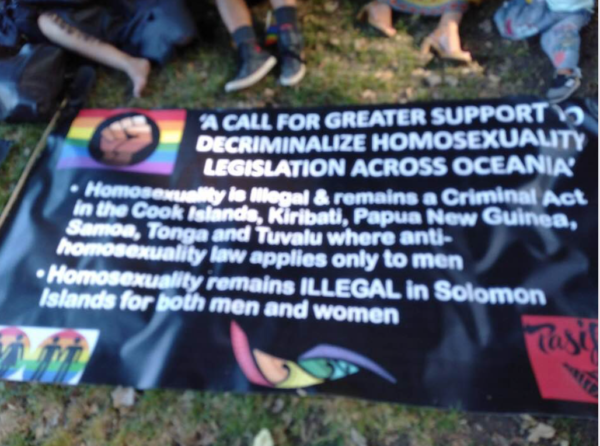 One of the signs I saw yesterday summed up why we need to keep protesting and have marches that raise these issues. I certainly believe that our advocacy to our Pacific neighbours is vital, we cannot turn our backs on our queer communities in the pacific, great to see it visible yesterday.