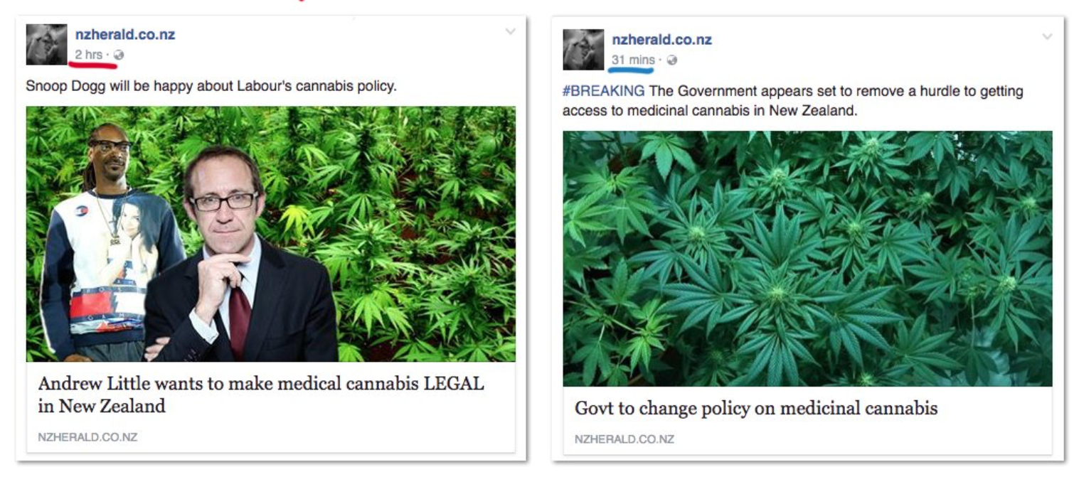 Let’s remember that Dunne and National are getting away with this because Labour and Greens are too frightened to argue for effective change, but let’s also acknowledge that the corporate mainstream media manipulate everything. Check this out. When it’s Andrew Little arguing for change, it’s Snoop Dogg time, when the Government announces it, it’s a serious issue.