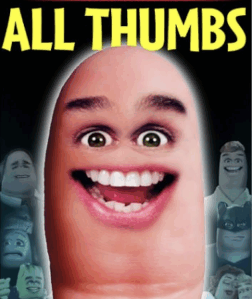 Definition of all thumbs, as in awkward. Lacking or showing a lack of nimbleness in using one’s hands.