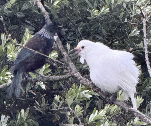 White Tui: “Look, I bloody told you earlier. My black feathers are at the dry cleaners!”.