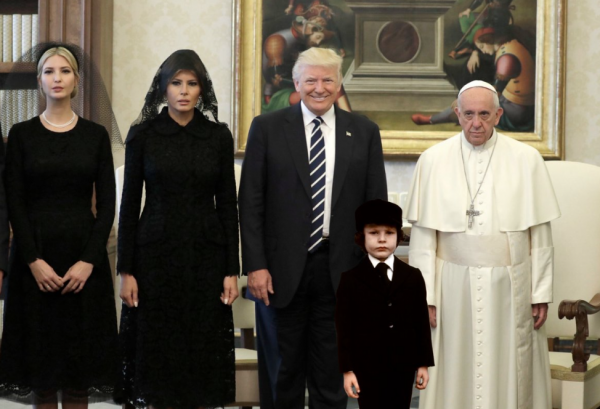 Don Trumpeone visits the Pontiff with widows and an orphan.
