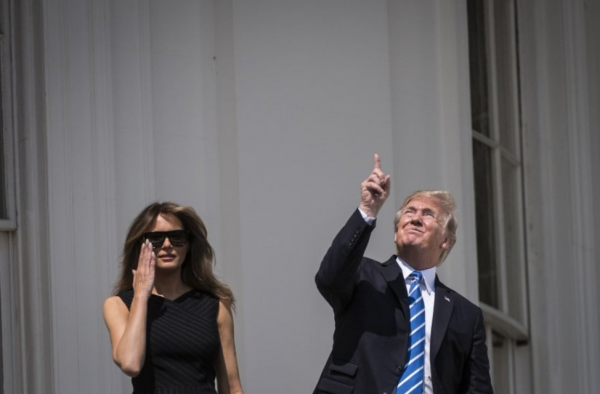 If that’s the eclipse the Trumps are looking at, it’s good to see the First Lady showing some common sense and wearing sunglasses and not looking directly at the sun. But the fool Trump himself …. obvious where the intellect lies between these two and it sure ain’t with him.