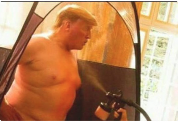 Donald gets sprayed with Moscow hooker pee. A gift from Vlad the Inveigler…