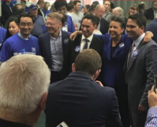 Jian Yang … not only a suspected spy, but also a Natz MP, who did not complete his NZ citizenship application form honestly! And here he is with other members of the crooked blue brigade, after urging his Northcote electorate compatriots to vote for little boy blue.