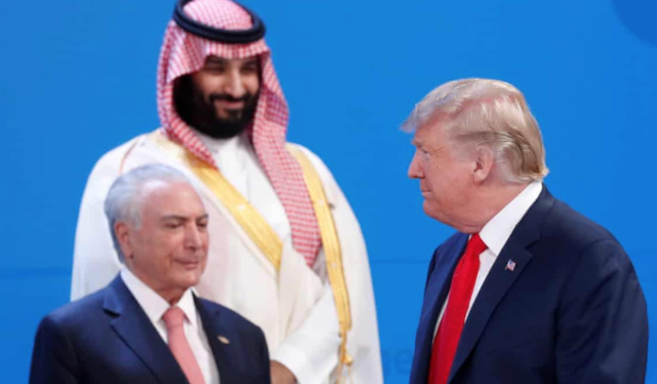 Mohammad bin Salman: [thinks] “Your ass is mine tonight, O Orange One. And it won’t be prostitutes pissing over you.”