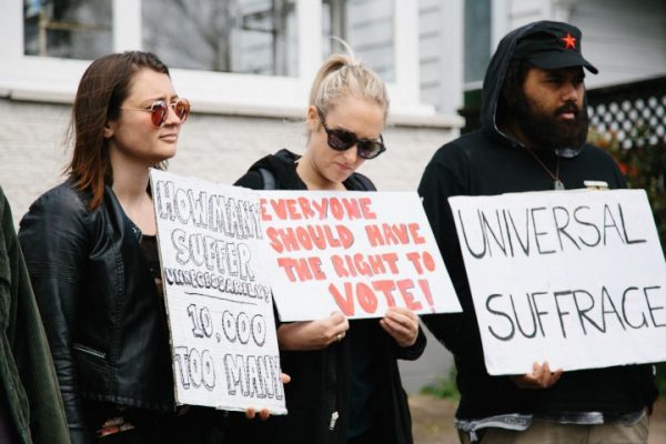 Protest demanding prisoners’ right to vote – People Against Prisons Aotearoa