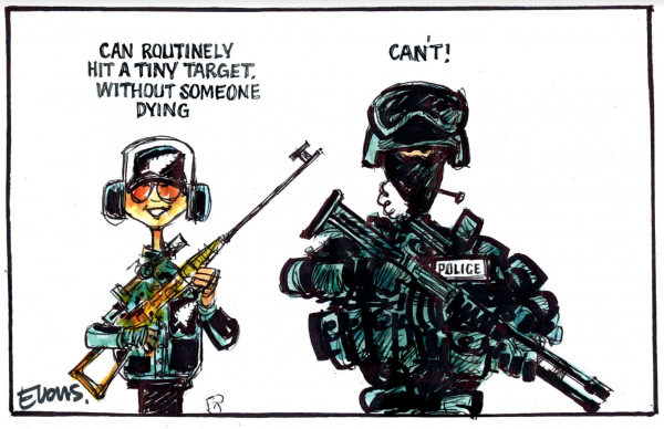 … aaaand on queue someone stumbles out of the cheap seats to defend the NZ Police. In a democracy, it’s as normal to criticize police as it is to criticize politicians. In a police state, it’s shocking and wrong to criticize the Police. What kind of society do you think Aotearoa is, Gary? I’m guessing you’ve never been harrassed by police while peacefully enacting your democratic rights …