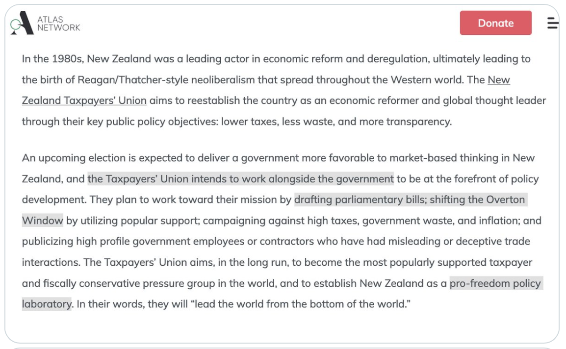 TDB has argued that Atlas DOES impact NZ elections and here is the latest update from Atlas Network on their tentacles inside NZ, read this and tell me if there isn’t an intimate knowledge by ATLAS of what is happening in NZ, hilariously this report on NZ was on the same page as a report on Lithuania…