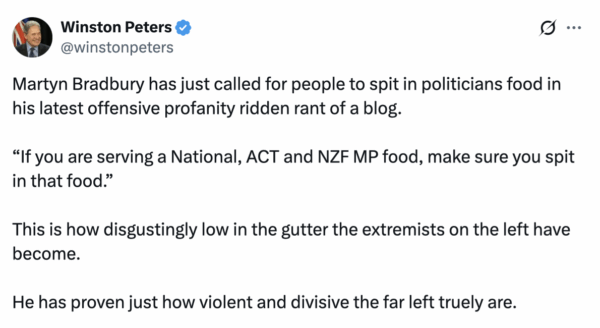 “Winston put the Palestinians last, NZ second to last and Israel First”. Martyn Bradbury