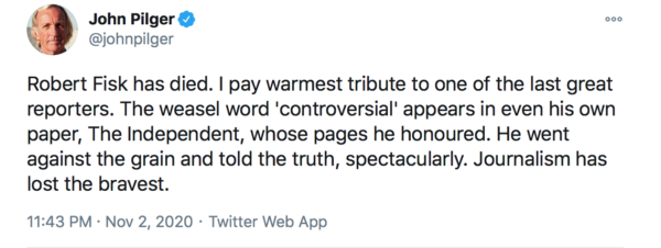 RIP Robert Fisk. He’ll be sorely missed.