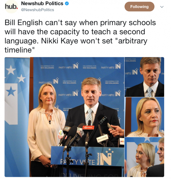 On Sunday’s TV3 news political editor Patrick Gower was critical of Bill English’s hesitancy when answering a question about the implementation timeline for National’s policy that every child at primary school will be able to learn a second language if they want to.