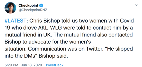 “Were the two women who tested positive for Covid-19 this week released from quarantine following personal representations advocating their early release from quarantine by National MP Chris Bishop?” Hipkins asked.