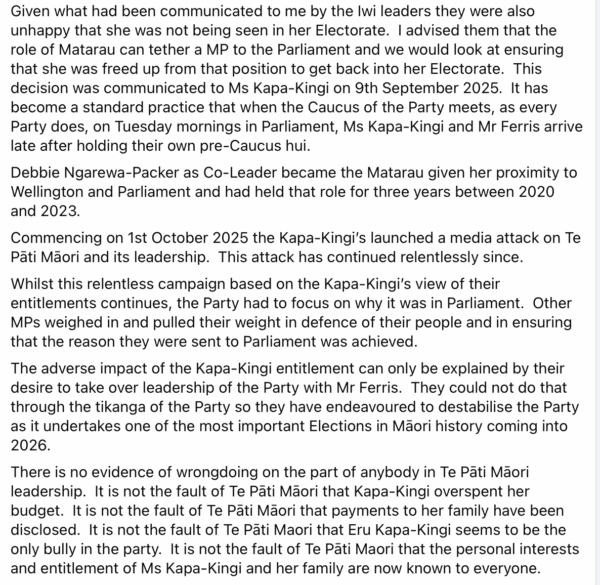 The issues of overspending and abusing Parliamentary staff raised against the Kapa-Kingi’s are legitimate and this would never have happened if Eru hadn’t toxically attacked the leadership and if Doc’s weird ‘Māori only’ sectarianism hadn’t emerged.