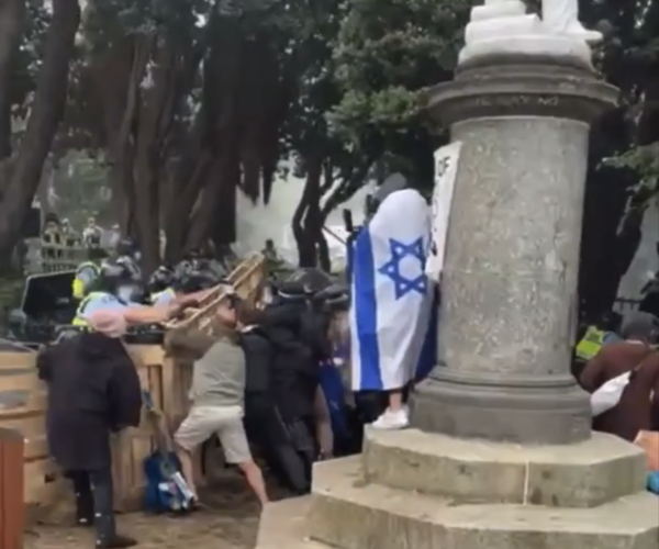 There was a Palestinian flag being held at one point during the occupation but the Palestine Solidarity Network Aotearoa has no idea who that person was. We tried to identify them from the livestream but couldn’t – if we had we would have told them to put the flag away. For all we know it could have been a deliberate plant.