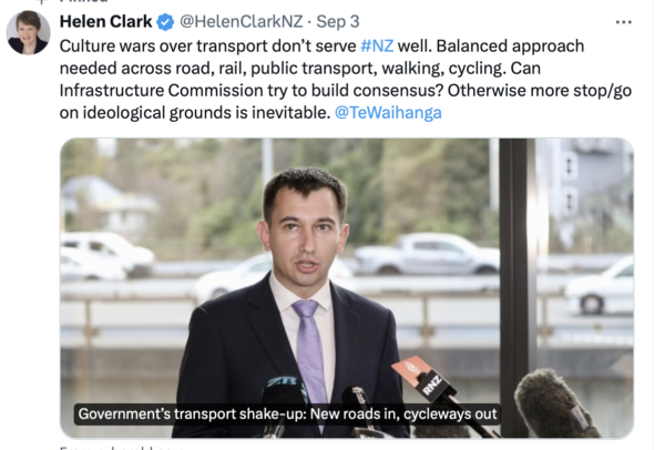 Helen Clark has accused Simeon Brown of stoking culture wars over transport policy…