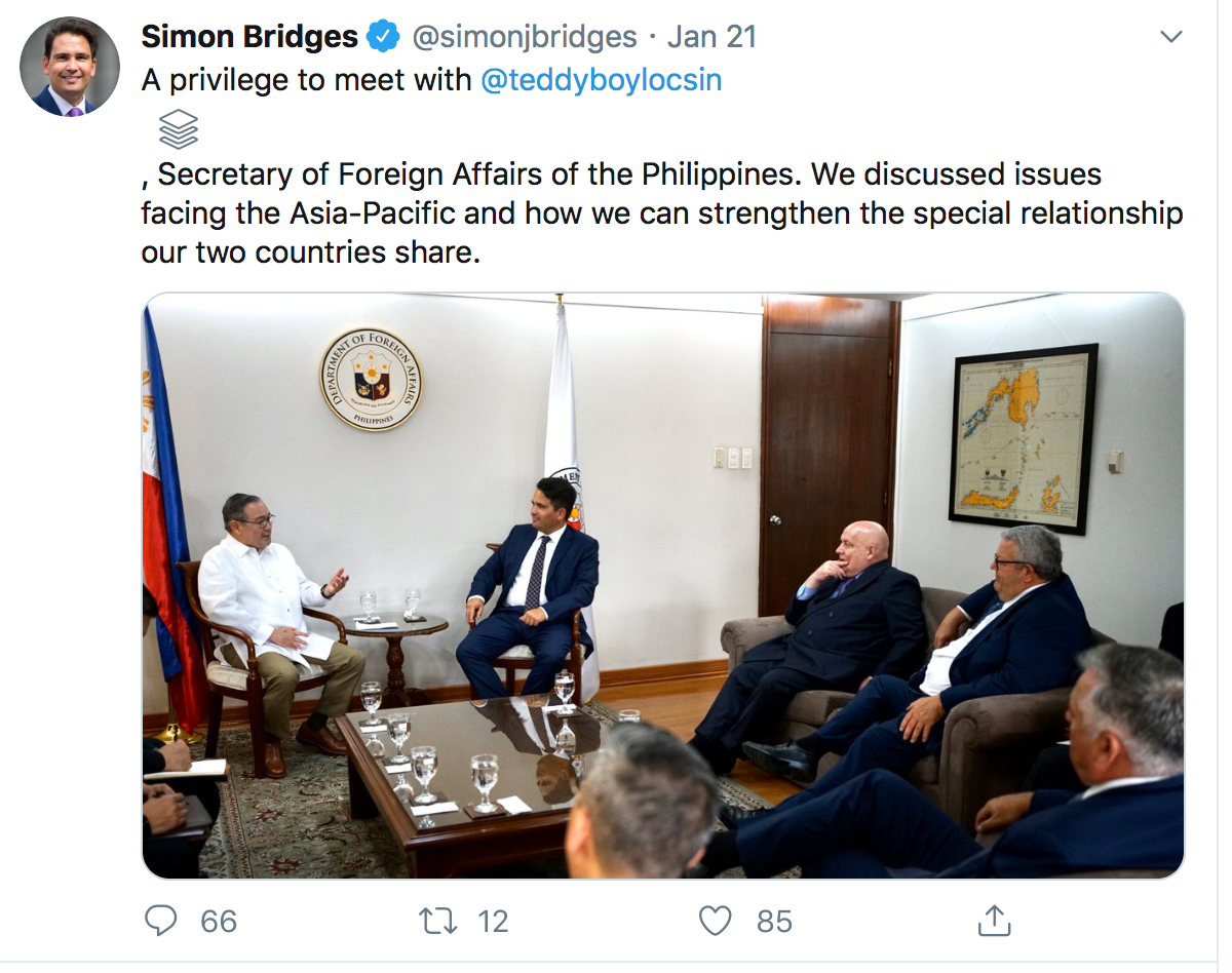 I wouldn’t be at all surprised if Teddy Locsin Jr said to some of his colleagues in his own language after the meeting with Simon Bridges this: “That guy(Bridges)looks like a right useless piece of rubbish. Good luck to New Zealand if he becomes the Prime Minister. Oh by the way Mr Brownlee I guess you didn’t go to the Memorial Service for the Holocaust. Welcome to the Phillipines instead.What sort of pies would you like? We have pork ones if you are interested???””
