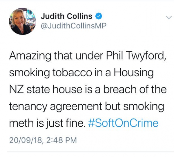 …after being officially informed in 2016 that they were misusing Housing NZs meth standards, after needlessly spending $120million on decontamination that we never should have paid, after throwing 2400 of the most vulnerable onto the streets, after demonising state tenants so the Government could push through a state house privatisation agenda, the Leader of the Party who did all this is now describing those beneficiaries who were spitefully treated as ‘Meth Crooks’???