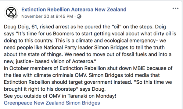 Extinction Rebellions should be pissed because Simon Bridges secretly met with oil interests to ram through a new law prosecuting deep sea oil activists and mislead Parliament about that meeting, all the while his very agency was pushing through that law change committing unethical spying actions against Greenpeace, the Green Party, the MANA Movement and local Iwi protesting possible oil pollution.