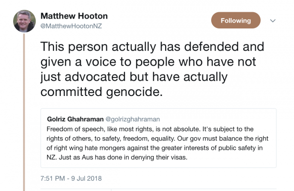 Didn’t they themselves cancel their visit after they were denied use of council property? They were not denied entry to NZ. Freedom of speech doesn’t mean anyone is obliged to provide them with a platform. Goff’s actions are free speech too.