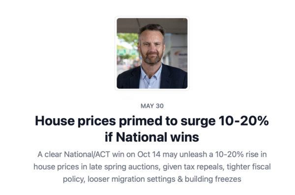 So House prices will leap 20% if National win? Why all that Real Estate Industry pimp money is being donated to National