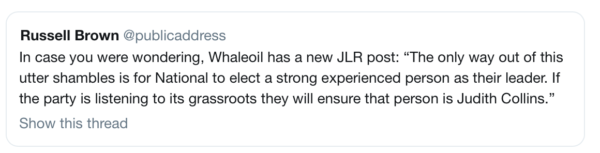 The issue about JLR’s bullying and harassment now becomes one the National Party has to explain after they covered it up and still promoted him. It’s incredible that his leaking of Bridges expenses became the trigger to remove him and not his bullying of female staff.