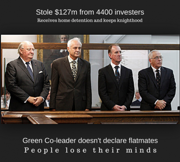 These are strong words but after a week of trawling through lots of other material including newspaper editorials, radio talkback and the comments section on certain blogs no other conclusion is possible. And, before I conclude this piece, supporters of those two Green MP`s who deemed Metiria Turei unworthy of the standards necessary for public office should look over the Lombard Finance case featuring former Attorney General Doug Graham* and former Labour Minister Bill Jeffries. Investors were mislead by false statements in a Company prospectus and lost large amounts of money, one might almost say they were ripped off. Yet, the two former directors offered no formal apology to investors. Instead, they fought their convictions through the courts as far as was possible.