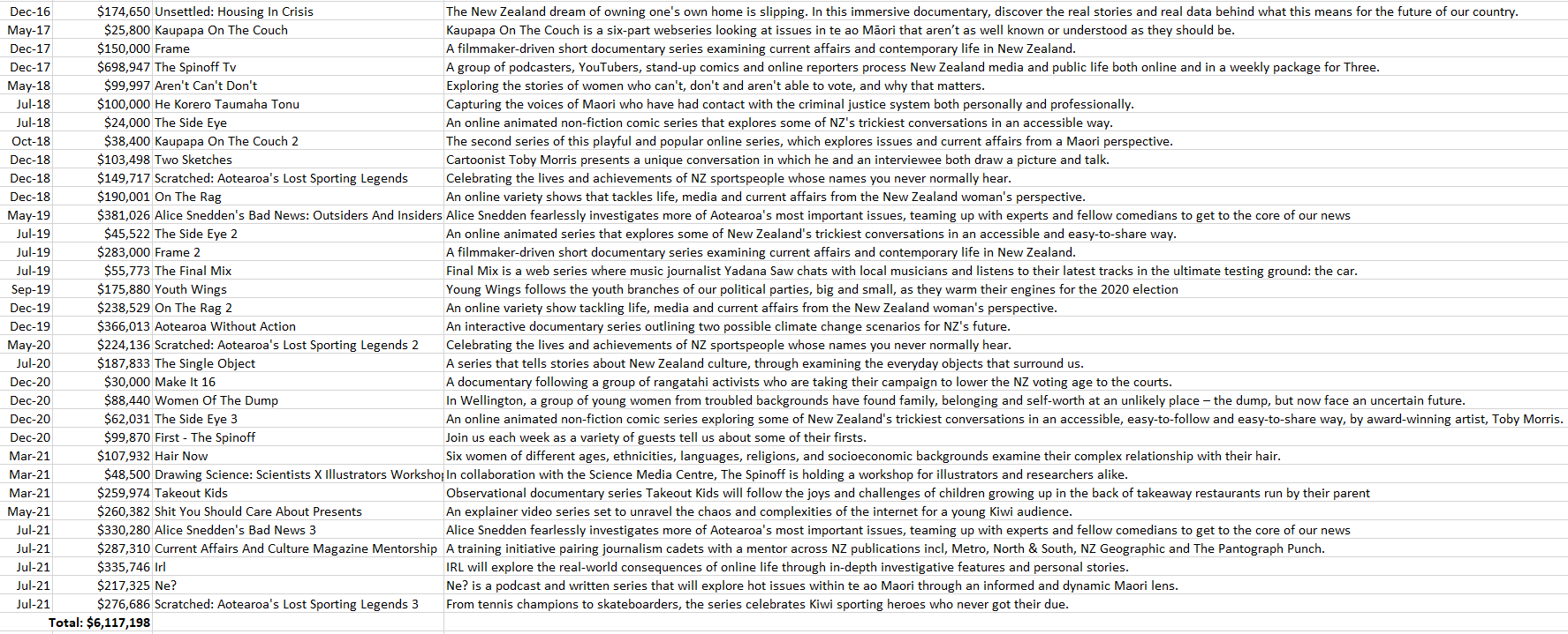 The Spinoff – NZ On Air has given The Spinoff $6.1 million while the Left have been in power so that the woke feel loved. While we all desperately want a new Trans Decolonizing Feminist Podcast hosted by Mummy Bloggers, whoever the new Broadcasting Minister is can’t seriously believe this is money well spent. Maybe, JUST MAYBE, The Working Group, NZ’s best weekly political podcast NOT funded by NZ on Air might finally, FINALLY be able to get one red cent out of them!