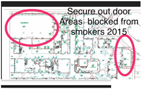 Statement re: P Nth Hospital secure smoking areas – management asked in 2015 to keep them open