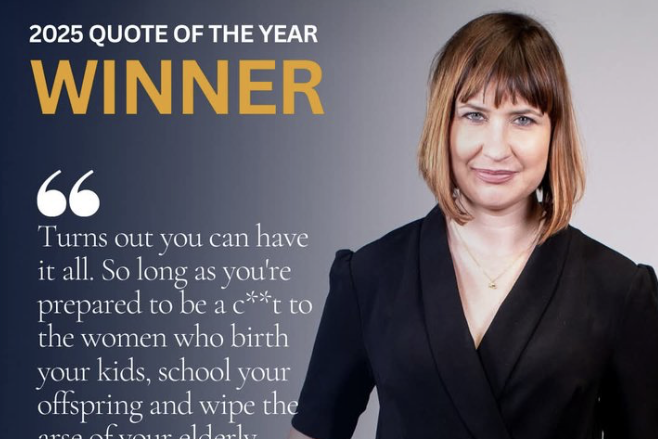 “Turns out you can have it all. So long as you’re prepared to be a c…t to the women who birth your kids, school your offspring and wipe the arse of your elderly parents while you stand on their shoulders to earn your six-figure, taxpayer-funded pay packet.”