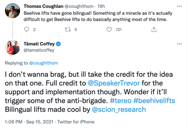 Mā te kōrero ka ora te reo – The language lives by people speaking it. No amount of changing government department names or bilingual lifts will matter if it is not able to get people to actually speak the language when it counts. Sure, exposure does make people more familiar with the language. But unless that puts them in a position to speak it, it does not in and of itself contribute much to maintaining māori as a living language.