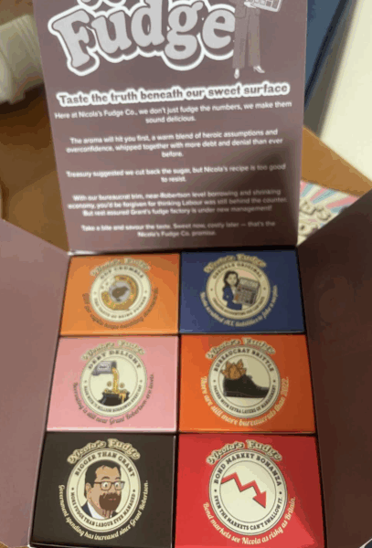 ‘Fudge factory’ is a euphemism for shit out of your arsehole and ‘fudge packer’ is a gay slur, so it should be no surprise that the juvenile Taxpayers’ Fake Union is loading up on the double entendres with their attack on Nicola Willis by sending out ‘Nicola’s Fudge’.