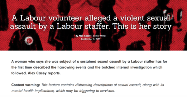 The complainant had given media a screenshot of an email and an attached document which she said she had sent to the Labour Party outlining her complaints of sexual assault.