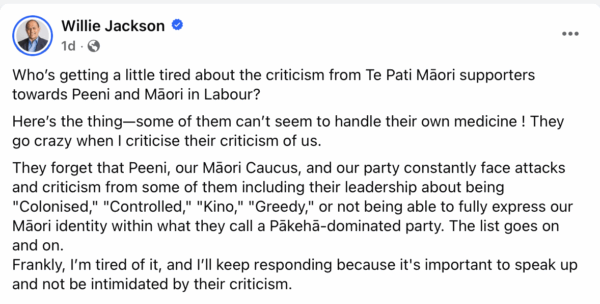 This comes after Willie Jackson unleashed on this mindset from Māori Party activists this week…