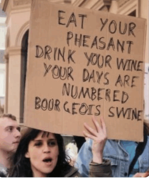 What’s missing from the image? A wall banner with the words: “Let them eat cake!”