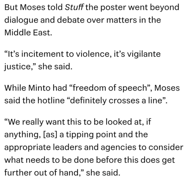 When Minto says it, it’s incitement to violence, when the President of the NZ Jewish Council says it, it’s light hearted banter defending genocide.
