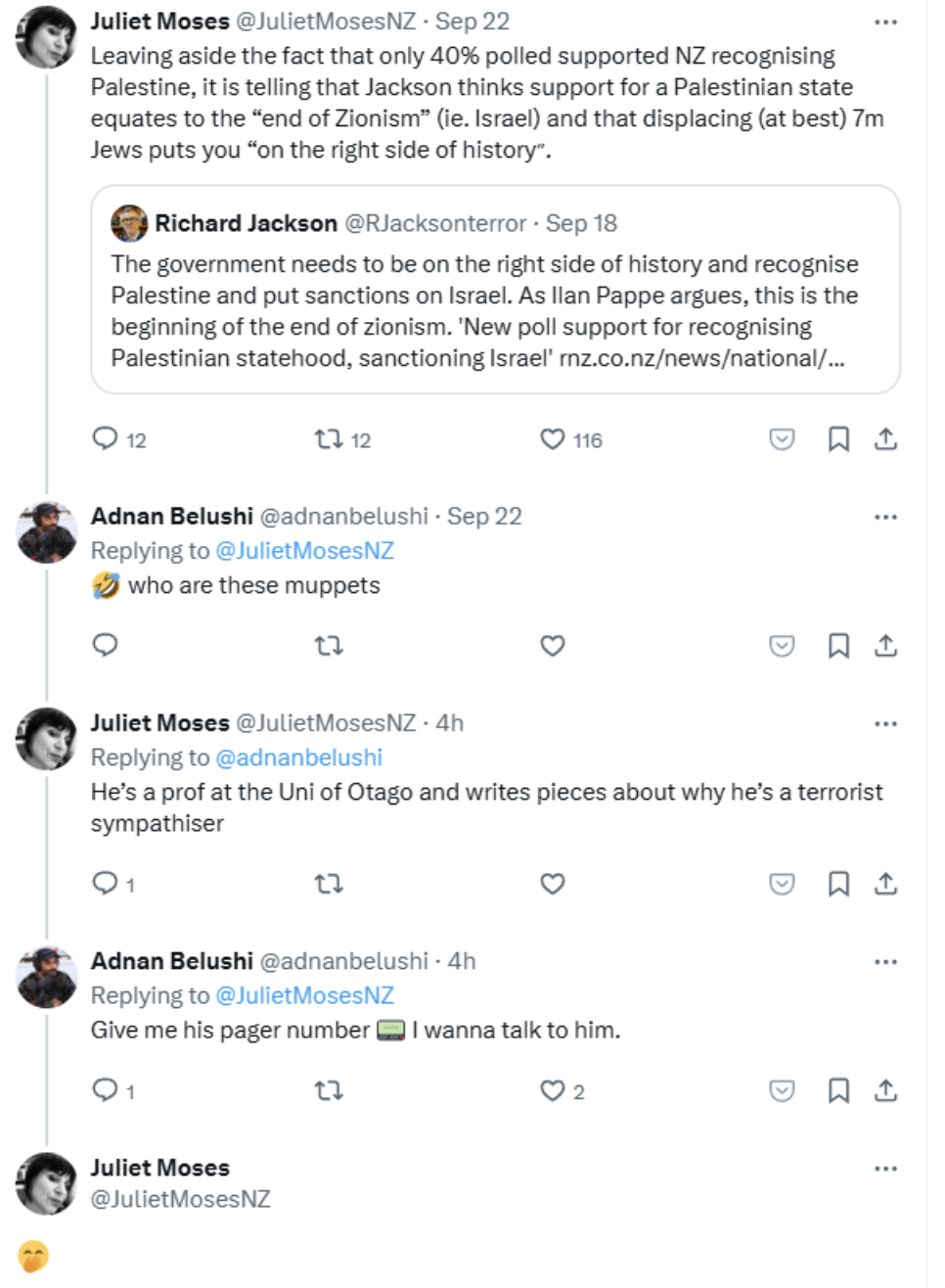 This is the President of the NZ Jewish Council, Juliet Moses attacking John Minto…