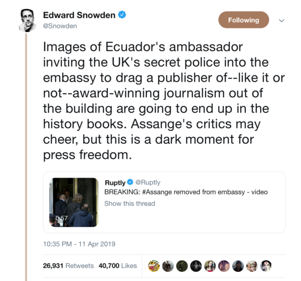 Julian Assange being arrested in the UK is a low point for civil rights and holding the powerful to account.