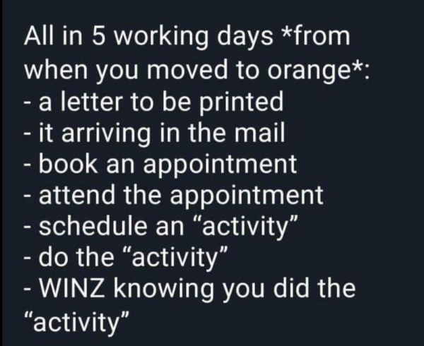 …all in 5 working days. This isn’t welfare, it’s a punishment system designed to trip beneficiaries up so they can be disqualified from welfare.