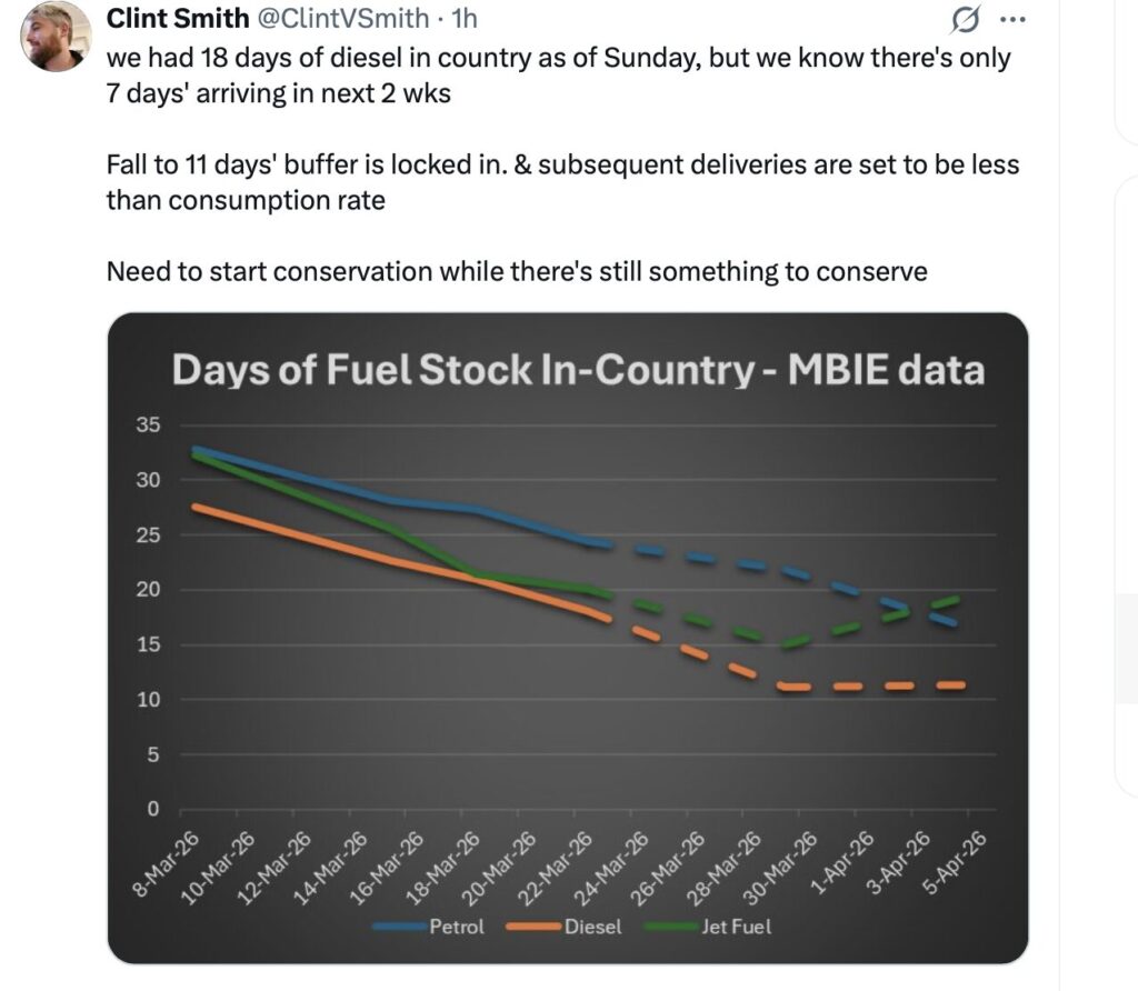 The date Luxon fears is the day NZ runs out of Diesel and that date is based on when the Straits reopen.