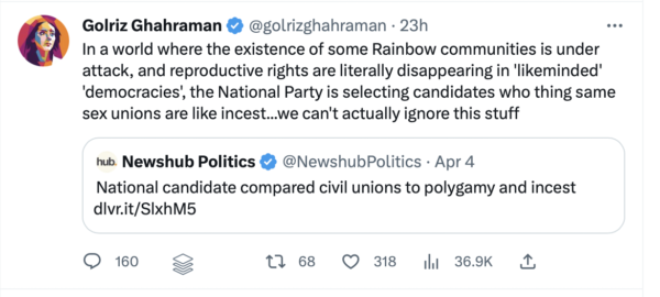 But hey, a 20 year old tweet is news, in NZ as evidence of some aggression against civil unions.
